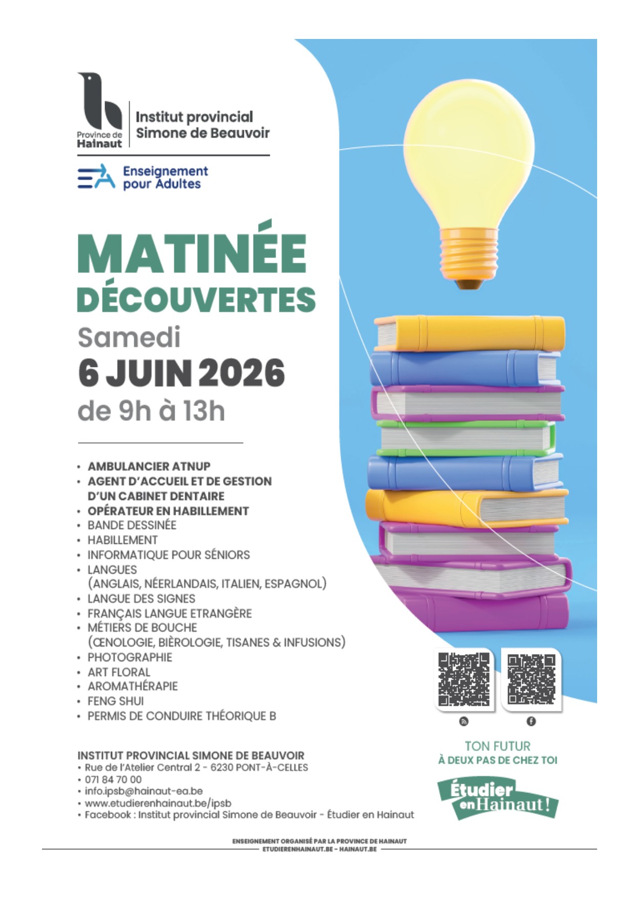 L’Institut provincial Simone de Beauvoir propose de nombreuses formations organisées suivant un horaire en soirée ou en journée compatible avec une activité professionnelle et la vie de famille.